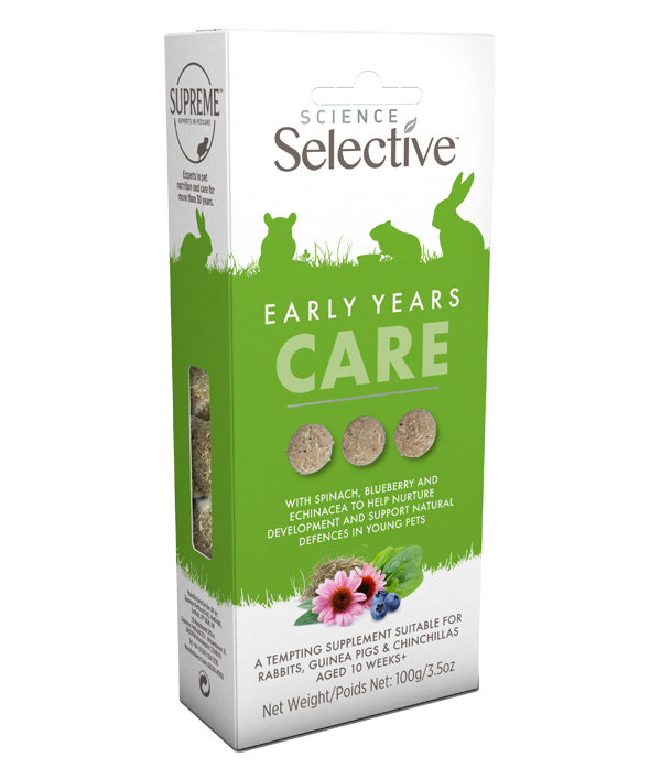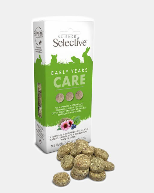 Les compléments alimentaires Supreme Science Selective Early Years Care sont formulés à base d’épinards, de myrtilles et d’échinacée pour favoriser le développement et renforcer les défenses naturelles des jeunes animaux de compagnie.